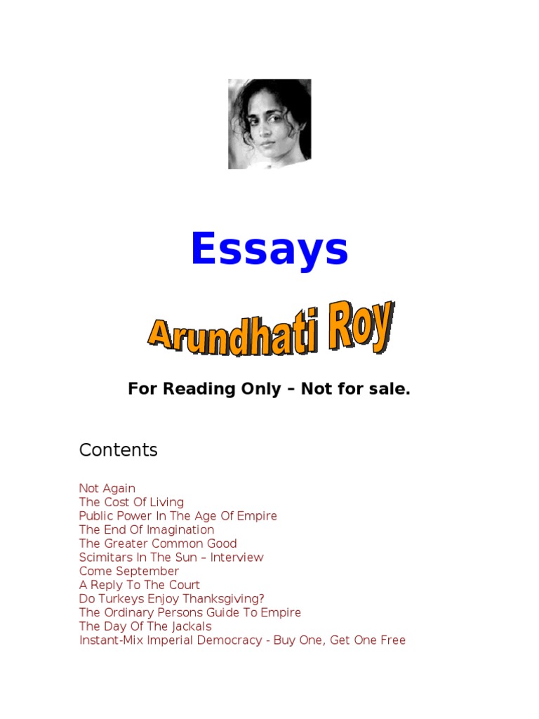 Arundhatiroycomeseptember5 this historical dredging is not offered as an accusation or a provocation. Rhetorical analysis of come september by arundhati roy the modern life does not stop striking one with injustice and cruelty that happens in the world. Some are silently observing what is going on around them. Lensic performing arts center santa fe new mexico 18 september 2002 also in pdf wars are never fought for altruistic reasons.