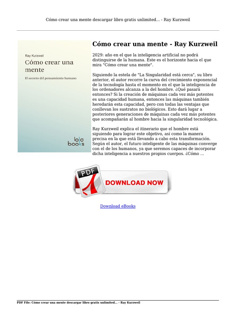 Title: Como Crear Una Mente Ray Kurzweil Descargar Libro Gratis