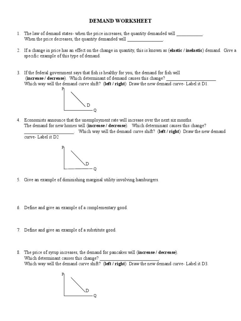 Shifts In Demand Worksheet